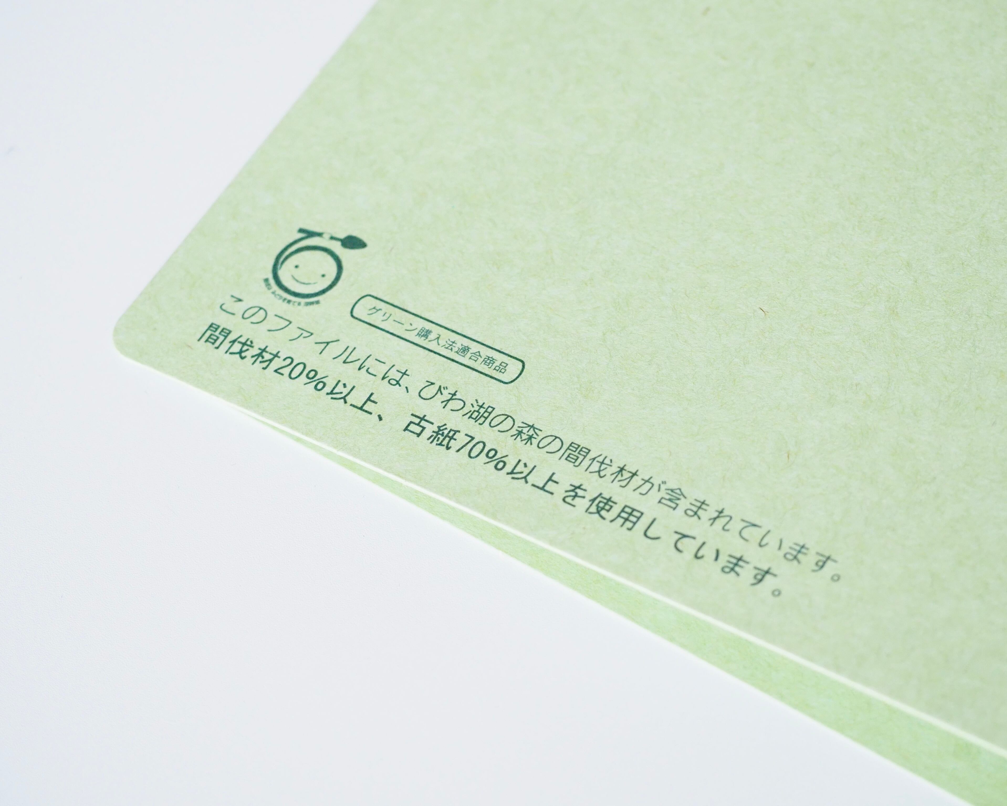 びわ湖の森の間伐材を20%以上配合したフラットファイル