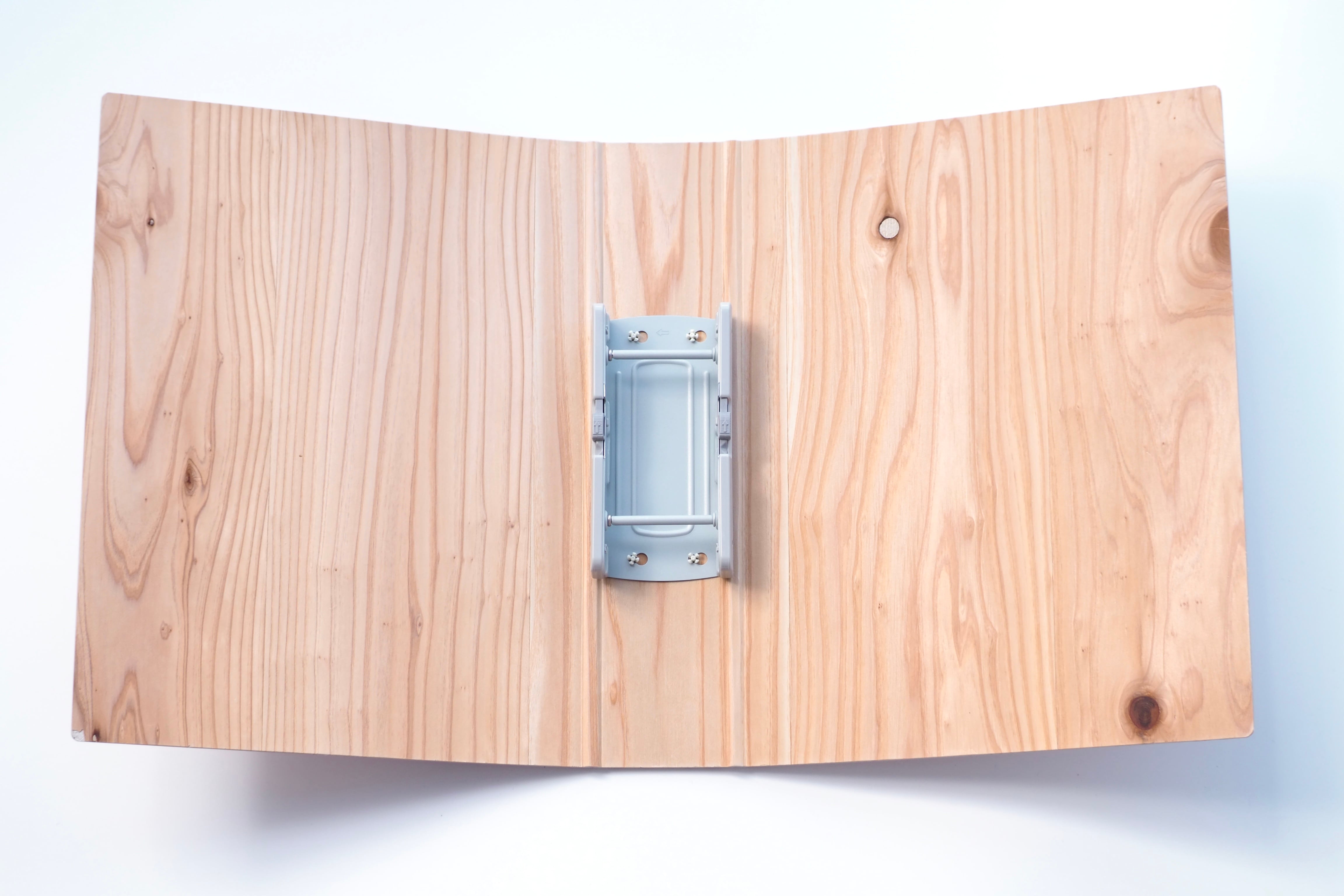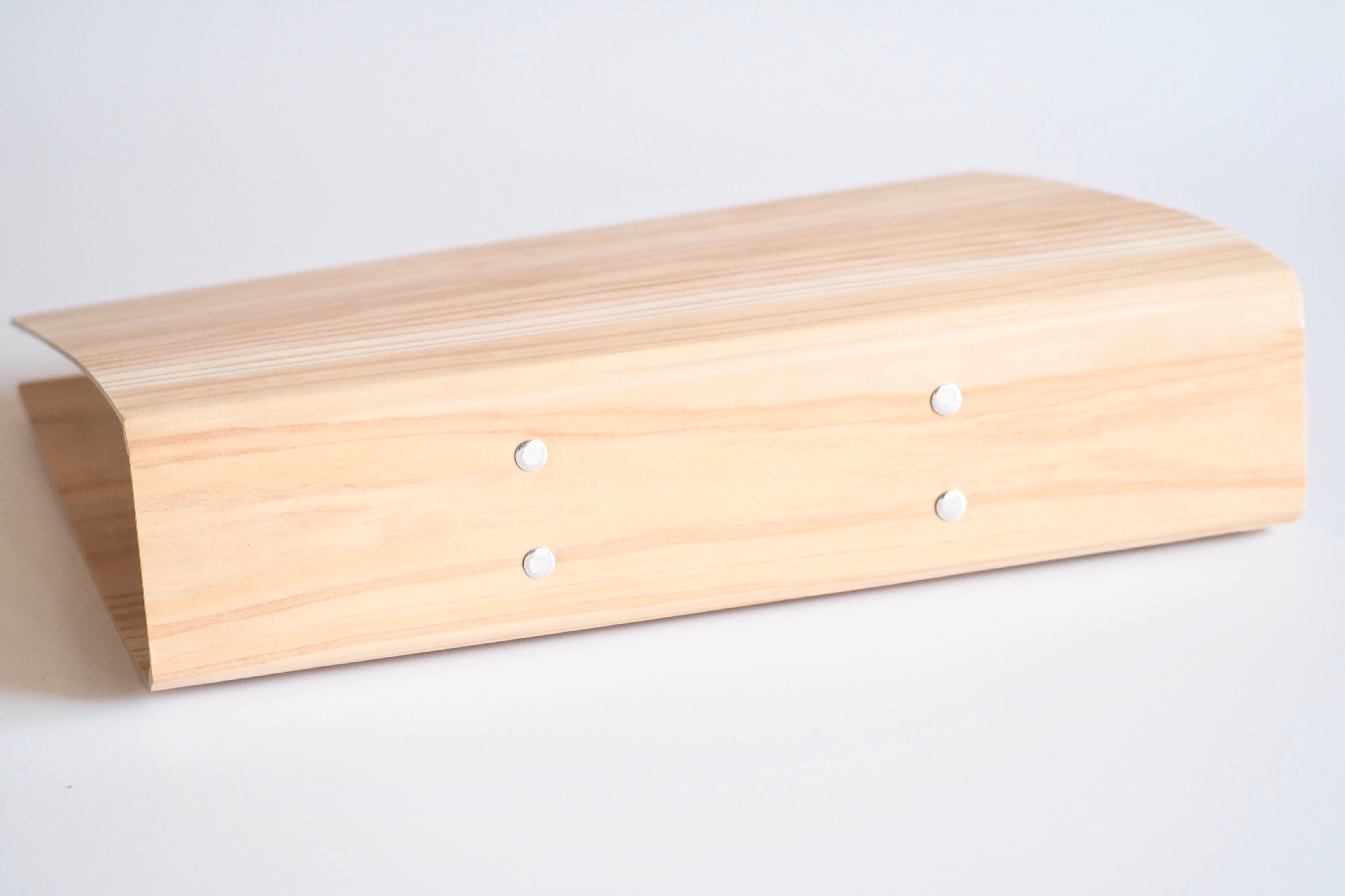 間伐材で作った板紙のうえに、薄くスライスした木を貼って仕上げています。