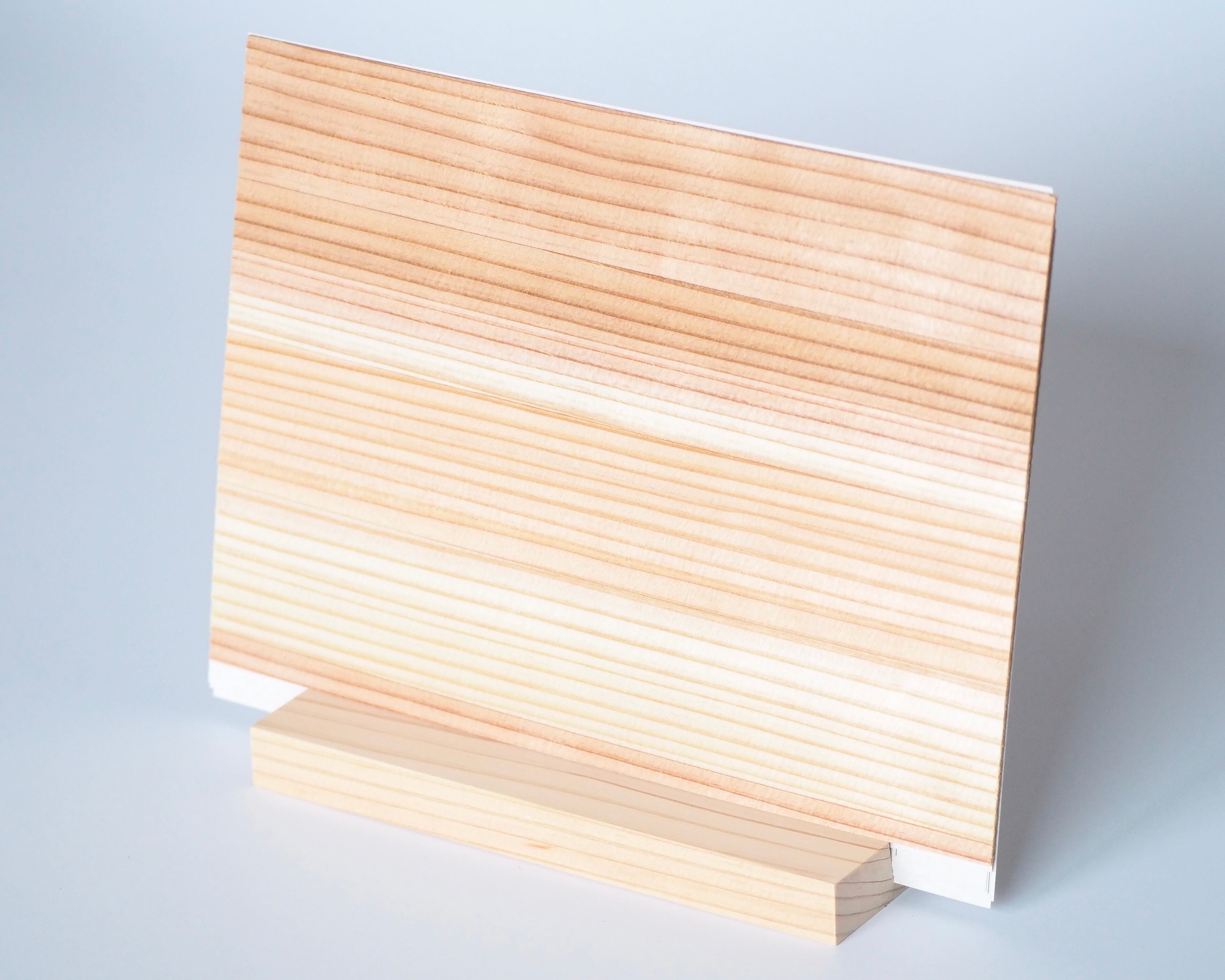 滋賀県産間伐材パルプを配合したkikitoペーパーを使用した、優しい色合いになっています。